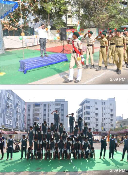 77వ గణతంత్ర దినోత్సవం సందర్భంగా త్రివేణి పాఠశాలలో నిర్వహించిన వేడుకలు ఎంతో వైభవంగా జరిగాయి. ఈ వేడుకలకు ముఖ్య అతిథిగా కార్డియాలజీ విభాగంలో విశేష సేవలందిస్తున్న డాక్టర్ పి.హర్షతేజ, మరియూ, విశిష్ట అతిథిగా ఇండియన్ ఆర్మీలో, జమ్మూ కాశ్మీర్ రెజిమెంట్లో నాయక్ గా 17 సంవత్సరాలు సేవలందించిన శ్రీ జి వెంకటరామిరెడ్డి గారు పాల్గొన్నారు. జ్యోతి ప్రజ్వలన అనంతరం ముఖ్యఅతిథి, విశిష్ట అతిధుల చేతుల మీదుగా జెండా ఆవిష్కరణ జరిగింది. పాఠశాల విద్యార్థిని విద్యార్థులు ప్రదర్శించిన సాంస్కృతిక కార్యక్రమాలు అందర్నీ అలరించాయి.ముఖ్య అతిథి హర్ష తేజ గారు మాట్లాడుతూ నేటి బాలలే రేపటి పౌరులు విద్యార్థిని విద్యార్థులు తమ తమ రంగాలలో ఉన్నత శిఖరాలకు ఎదగాలని ఆకాంక్షించారు. విశిష్ట అతిథి వెంకటరామిరెడ్డి మాట్లాడుతూ గణతంత్ర దినోత్సవ వేడుకల వేదిక మీదుగా విద్యార్థిని విద్యార్థులు ఉన్నత విద్యావంతులుగా ఎదగాలని అలాగే దేశ రక్షణలో పాలు పంచుకోవాలని ఆకాంక్షించారు. పాఠశాల డైరెక్టర్ డాక్టర్ గొల్లపూడి వీరేంద్ర చౌదరి గణతంత్ర దినోత్సవ సందర్భంగా మాట్లాడుతూ త్రివేణి విద్యాసంస్థలు విద్యార్థుల దేశభక్తి ని పెంపొందిస్తూ,వారి ఎదుగుదలకు ఎల్లప్పుడూ కంకణ ధారణ చేసి వారి అభివృద్ధి కోసం కృషి చేస్తాయని వివరించారు. అనంతరం పాఠశాల ప్రిన్సిపల్ రాజేంద్రప్రసాద్ మాట్లాడుతూ 76 సంవత్సరాల గణతంత్ర భారతదేశం ఎన్నో మైలురాళ్లను చేరుకొని అభివృద్ధి పథంలో దూసుకుపోతుందని అలాగే భారతదేశం ప్రపంచంలోనే అగ్రగామిగా, ఆర్థిక సామాజిక రక్షణ వ్యవస్థలుగా రూపొందాలని ఆకాంక్షించారు. విద్యార్థులు ప్రదర్శించిన నృత్యాలు విద్యార్థులు గానం చేసిన పాటలు అందర్నీ ఆకట్టుకున్నాయి. పాఠశాలలోని ఎన్ సి సి విద్యార్థులు నిర్వహించిన పిరమిడ్ షో విద్యార్థుల టీం వర్క్ క్రమశిక్షణ లను ప్రతిబింబించే విధంగా ఉన్నాయి.ఈ కార్యక్రమంలో కృష్ణవేణి త్రివేణి విద్యాసంస్థల డైరెక్టర్ యార్లగడ్డ వెంకటేశ్వరరావు పాఠశాల సి ఆర్ ఓ కాట్రగడ్డ మురళీకృష్ణ పాఠశాల వైస్ ప్రిన్సిపల్ స్వప్న, ముస్తఫా , క్యాంపస్ ఇంచార్జ్ చార్లెస్, సందీప్ మరియు ఉపాధ్యాయుని ఉపాధ్యాయులు పాల్గొన్నారు.