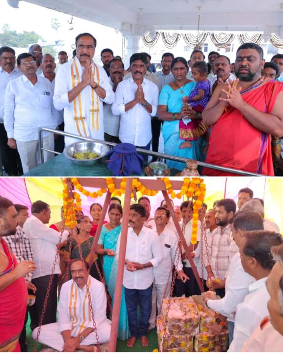 ఎమ్మెల్యే సంజయ్ కుమార్ రాయికల్ పట్టణంలోని శ్రీ వెంకటేశ్వర ఆలయంలో స్వామివారిని దర్శించుకుని ప్రత్యేక పూజలు నిర్వహించి, నిలువెత్తు బంగారం (బెల్లం) తులా భారం సమర్పించారు. ఈ సందర్భంగా రాయికల్ మున్సిపల్ మాజీ కో ఆప్షన్ సభ్యులు మహేందర్ బాబు మాట్లాడుతూ జగిత్యాల ఎమ్మెల్యే గా డాక్టర్ సంజయ్ కుమార్ 2023 ఎన్నికలలో గెలుపొందాలని వెంకటేశ్వర స్వామిని మొక్కుకున్నానని, ఎమ్మెల్యేగా గెలవడంతో ఆ స్వామివారి మొక్కు తీర్చినట్టు అయిందని మహేందర్ బాబు అన్నారు. ఈ కార్యక్రమంలో రాయికల్ పట్టణ మరియు మండల నాయకులు ఆలయ కమిటీ సభ్యులు భక్తులు తదితరులు పాల్గొన్నారు.