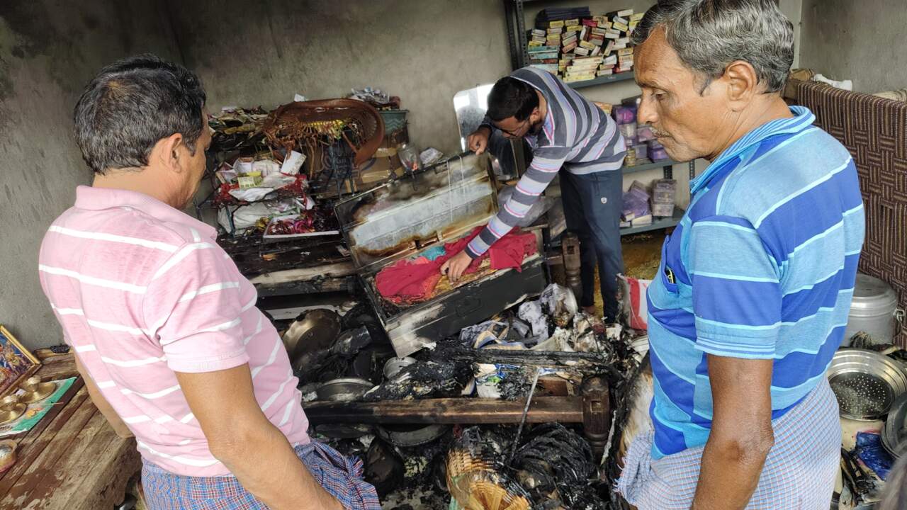 ప్రమాదవశత్తు మంటలు అంటుకొని ఇంట్లో సామాన్లు దగ్ధం.