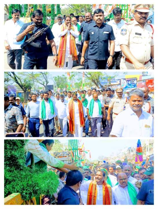 🔹 నర్సంపేట ఎమ్మెల్యే దొంతి మాధవరెడ్డి , గీసుకొండ మండలం కొమ్మాల లక్ష్మీ నరసింహ స్వామి జాతరను పురస్కరించుకొని నర్సంపేట నియోజకవర్గం నుండి వందలాదిగా కదిలిన కాంగ్రెస్ పార్టీ ప్రభ బండ్లను కొబ్బరికాయలు కొట్టి ప్రారంభించారు.