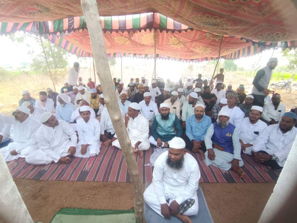 నల్గొండ జిల్లా నాగార్జున సాగర్ నియోజక వర్గం హాలియా మున్సిపాలిటీ ఈద్గా వద్ద ముస్లిం సోదరులు రంజాన్ పండగ సందర్భంగా భక్తి శ్రద్ధలతో ప్రార్థనలు చేశారు ఈ కార్యక్రమంలో ముస్లిం మత పెద్దలు ముస్లిం సోదరులు పాల్గొన్నారు ఈ కార్యక్రమంలో ముఖ్య అతిథిగా హాలియా మున్సిపాలిటీ చైర్మెన్ చింతల చంద్రారెడ్డి మాట్లాడుతూ నెల రోజుల పాటు ఉపవాసాలు చేసి ఈ రోజు రంజాన్ పండగ చేసుకుంటున్న ప్రతి ఒక్కరికి ప్రత్యేక శుభాకాంక్షలు తెలిపారు ఈ కార్యక్రమంలో ముస్లిం సోదరులు మరియు హాలియా మున్సిపాలిటీ కౌన్సిలర్లు పాల్గొన్నారు