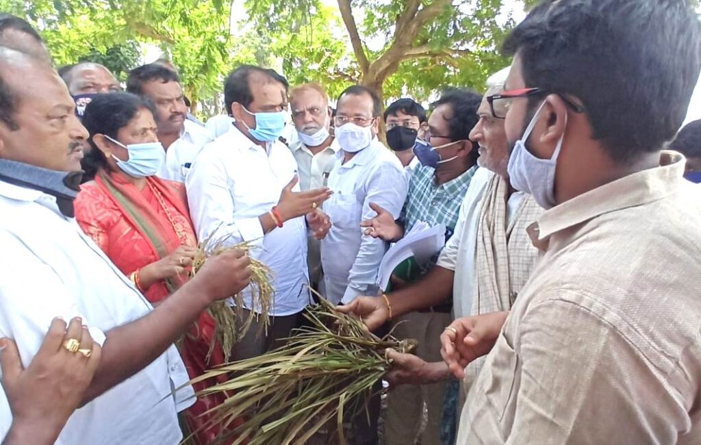 పంట న‌ష్ట‌పోయిన రైతుతో మాట్లాడుతున్న‌క‌న్న‌బాబు