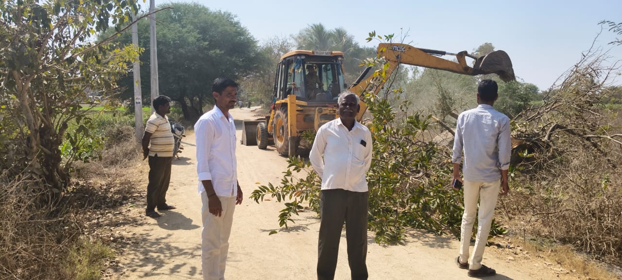 ఎస్సి కాలనీ లో రోడ్లపై పై అడ్డుగా ఉన్న చెట్లను ప్రజల సౌకర్యం కోసం తొలగిస్తున్న సర్పంచ్