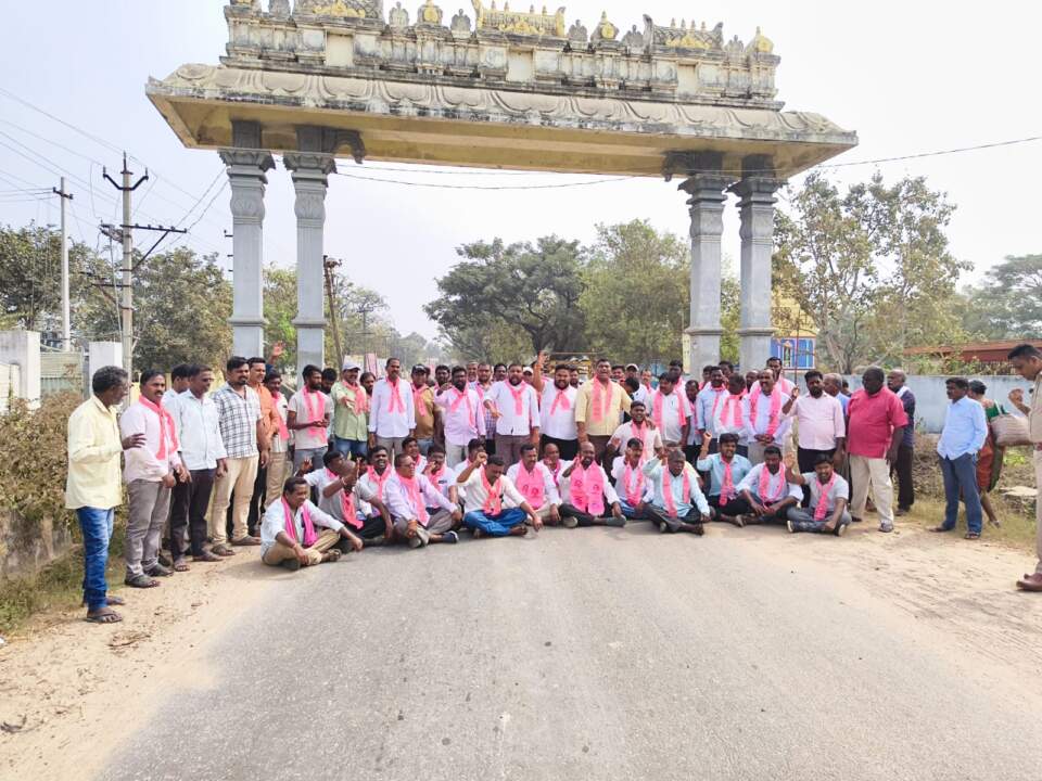 జాతీయ రహదారిపై గులాబీ శ్రేణుల రాస్తారోకో