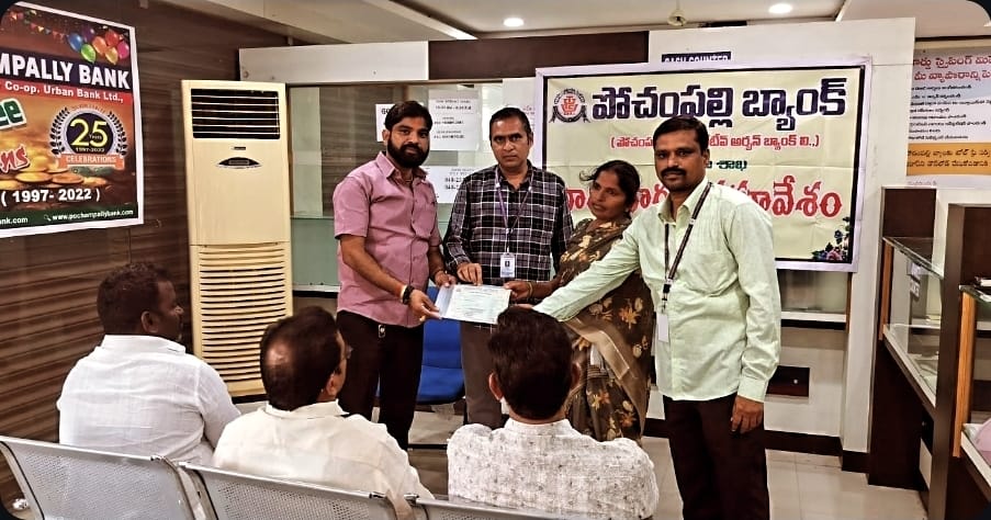 పోచంపల్లి బ్యాంకు బీమా చెక్కు అందజేత….
